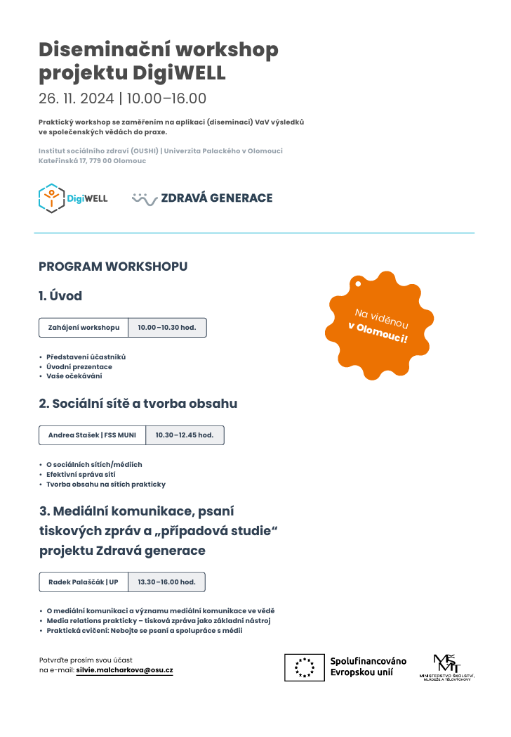We warmly invite you to the dissemination workshop led by Radek Palaščák. The event will take place at Palacký University in Olomouc.